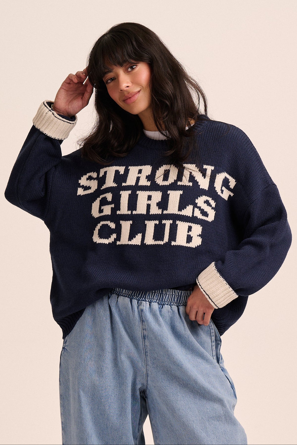This cosy jumper is crafted with chunky, wool-free yarn, providing a warm and comforting embrace from The Club. Its hand-knitted design adds a charming touch and serves as a reminder that YOU are The Club.