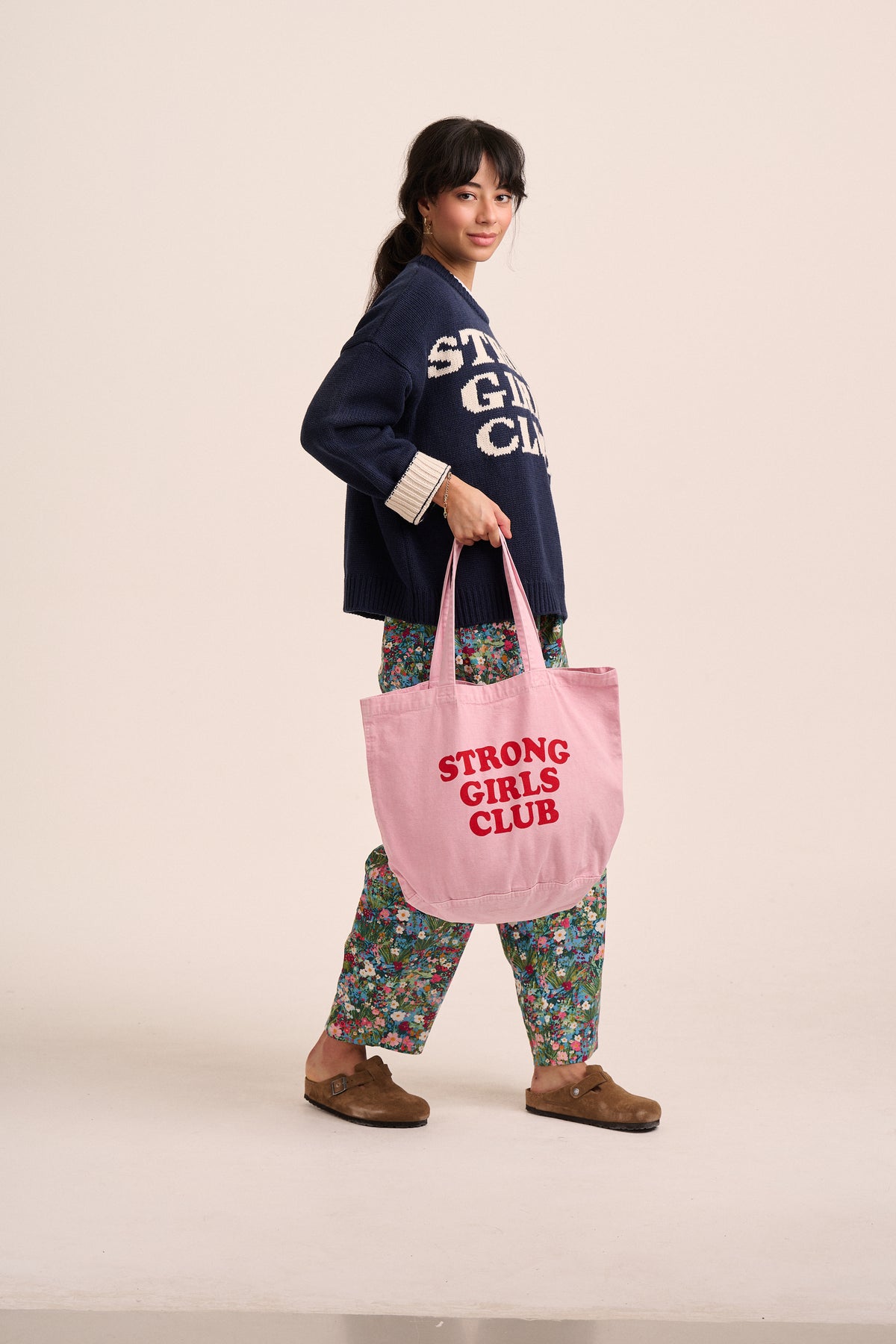 Strong Girls Club Printed Tote Bag - Pink