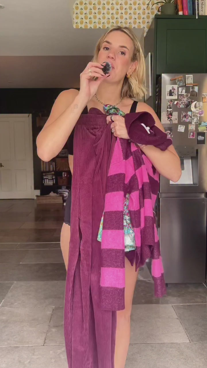 Step into pure comfort and luxury with the Iris Berry Cord Trousers. Crafted from the softest cord fabric, these trousers drape beautifully while the easy waistband keeps you comfortable all day. The rich jewel berry color adds a playful pop that’s perfect for dressing up or down—your new go-to for effortless style and cosy vibes.